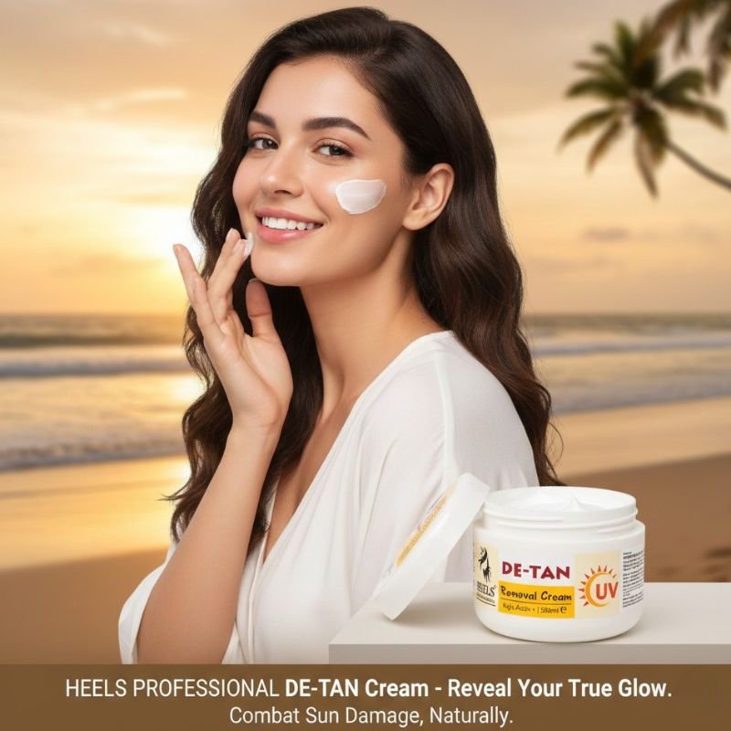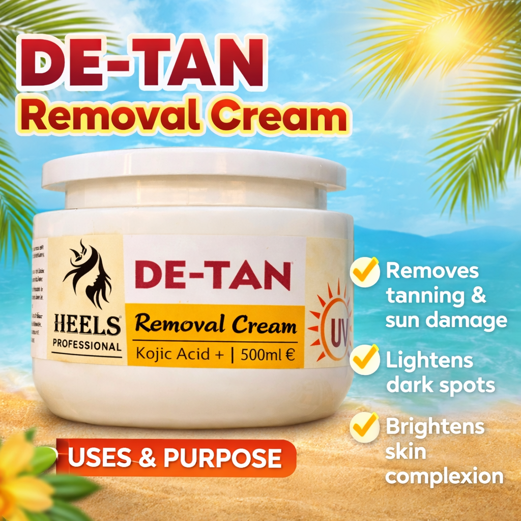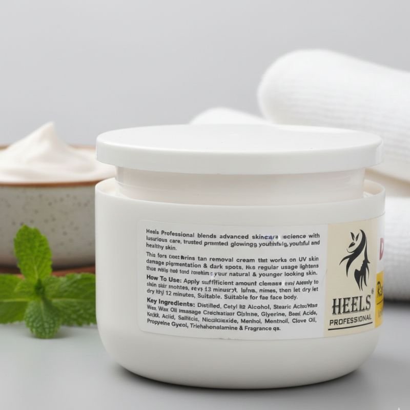 Reveal brighter, clearer, and refreshed skin with Heels Professional De-Tan Removal Cream. Specially formulated for effective tan removal, this advanced professional formula helps reduce sun damage, dullness, and uneven skin tone, giving your skin a healthy and radiant glow.