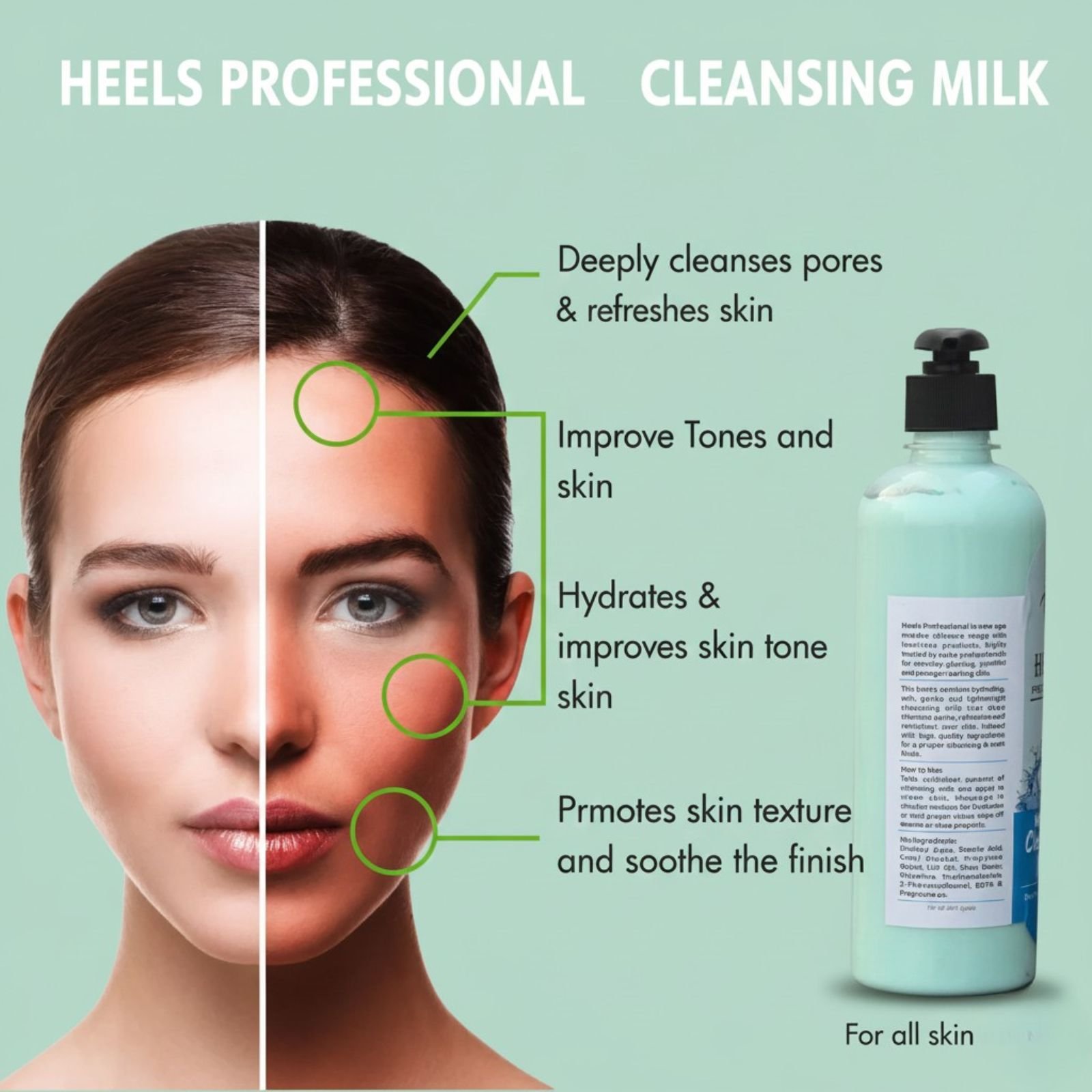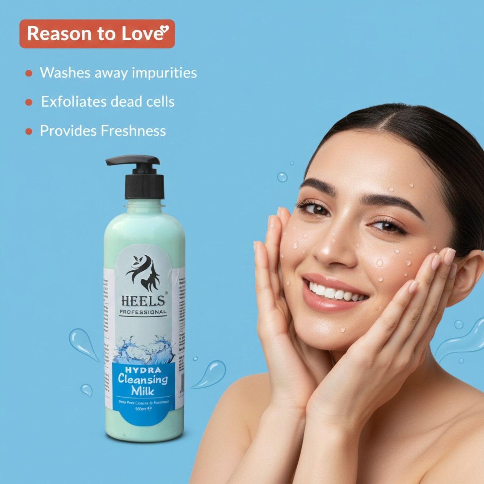 Heels Professional Hydra Cleansing Milk is a gentle yet effective cleanser designed to remove makeup, impurities, and excess oil while maintaining the skin’s natural moisture balance. Its creamy, hydrating formula cleanses without stripping, leaving the skin feeling soft, fresh, and comfortably nourished.